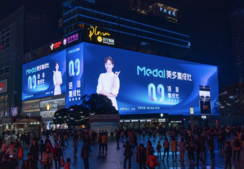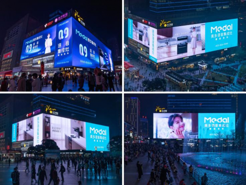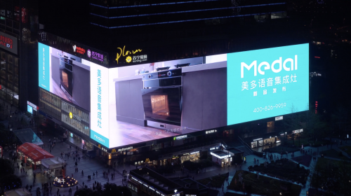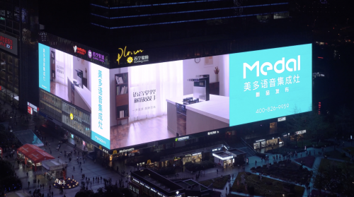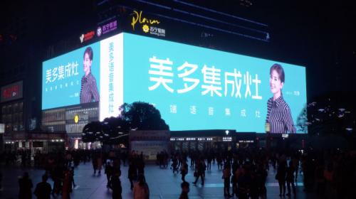3月14号晚上 美多集成灶品牌广告 强势登陆重庆观音桥商圈 亚洲第一屏亚洲之光 美多的宣传海报、轮播视频 让人眼前一亮,赚足眼球, 牢牢锁定城市核心商圈C位! 耀眼的美多蓝, 迷