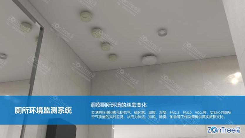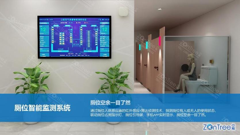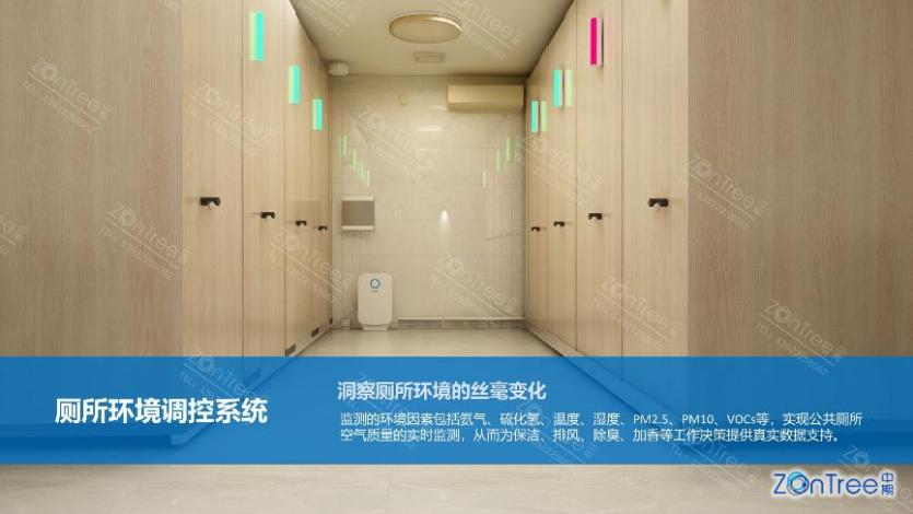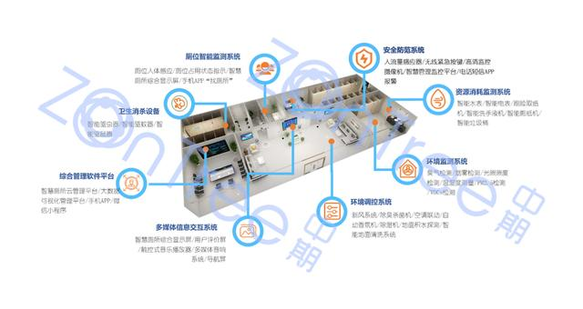 中期科技zontree.cn智慧公厕/智慧公厕管理系统包括厕位智能监测系统、环境监测系统、环境调控系统、资源消耗监测系统、安全防范系统、卫生消杀设备、多媒体信息交互系统、管理联动控制系统等八大系统。(作者原创,侵权必究)