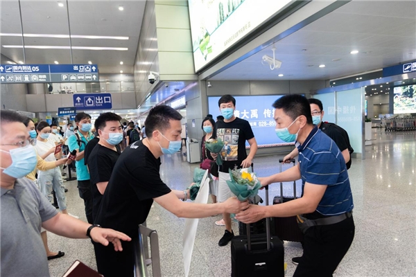 2020年6月29日下午,蜀大侠率先响应政府号召为抗疫英雄补过火锅味的中国年,邀请英雄们在西玉龙门店免费就餐,蜀大侠西玉龙店的员工们早早准备好鲜花在成都双流机场等待接机。蜀大侠用简单的行动表达感谢,将大侠温暖继续传递,让抗疫英雄在成都感受到家的温暖,感受到2020年迟来的年味。
