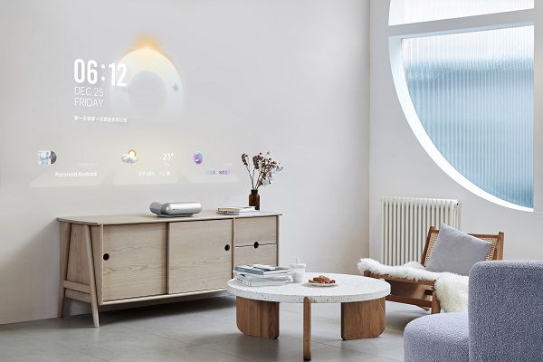 坚果智慧墙O1虽然没有进行动态展示,但其独特的极简跑道圆设计、充满了科技与时尚感的月光银外观让众人目光聚焦于它。坚果智慧墙O1运用更先进的投影技术、更多维度的智慧感知、更加丰富的内容交互,让墙面承载更丰富多彩的信息。其超近距投影镜头极大节省了家庭的使用空间,贴墙就能投的优势让投影可以随意摆放,让人们始终处于视听体验的C位,增强沉浸式的音画体验。