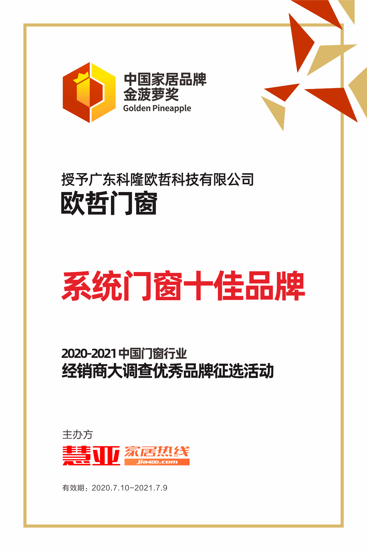 而欧哲的经营理念和服务品质,也得到了行业权威认证。获评《系统门窗十佳品牌》荣誉,就是欧哲先进性的认证。