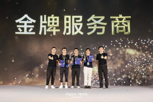 现场还举行了隆重的颁奖仪式。基于服务商团队在2019年的表现,Aqara分别评选出最佳开拓奖、业绩先锋奖、最佳服务奖和价值观榜样奖四大奖项。同时,Aqara还为2019年度表现最为突出的三家服务商授予了“金牌服务商”称号,他们分别是沈阳服务商黄宝亮、温州服务商戴忠建和成都服务商孙俊辉。他们在业务一线的点点滴滴将成为所有服务商的榜样,也将成为智能家居行业深刻的发展印记。