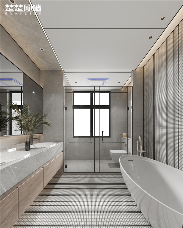 顶部采用铝晶大板搭配无主灯设计