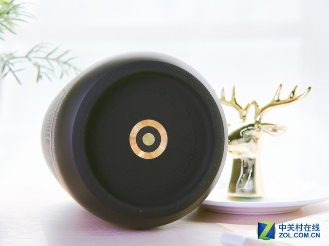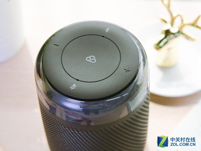 感应灯环可以根据你的不同指令变化不同的颜色,比如你要是关闭麦克风,它就变成红色;你要是打开蓝牙模式,他就是深蓝色。他还会根据你的音量调节来改变亮度,音量越大它的灯环亮度越高,音量更为直观,这点很是加分。