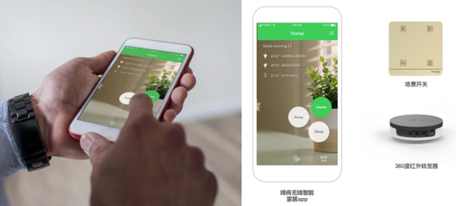 施耐德电气,推出的AvatarOn绎尚无线智能家居系统基于无线Zigbee技术,涵盖照明、舒适、安全、环境四个应用场景,消费者只需通过手机APP即可远程无线操控包括环境调节、照明控制、能效管理、遮阳管理、人身安全看护、家庭安全看护、场景联动等诸多功能,真正做到在千里之外,掌控居家环境。这一系列延续了绎尚系列的前瞻设计,并结合睿智性能,每一个消费者都可以轻松实现一体化智能家居系统所带来的便捷与舒适。