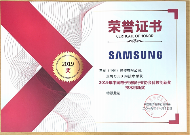 会上,三星斩获两项大奖。其中,QLED 8K技术获得2019中国电子视像行业协会科技创新奖-技术创新奖。QA75Q900RBJXXZ荣获2019中国电子视像行业协会科技创新奖-产品创新奖。