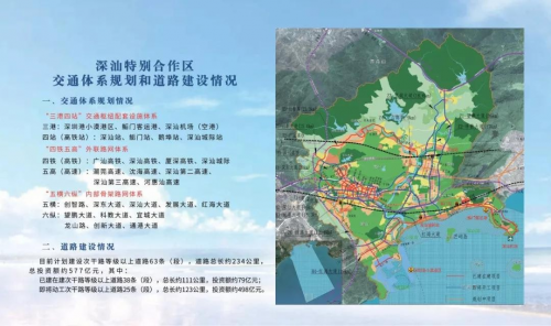 深汕特别合作区的交通网络已经纳入深圳的交通体系,深汕将建设成为大湾区交通枢纽,是深圳唯一一个集合“海陆空铁”的区域。
