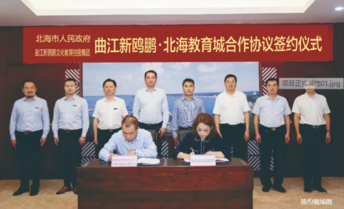 【曲江新鸥鹏·北海教育城】作为广西自治区“双百”项目和自治区层面统筹推进重大项目,一举一动都备受关注。2019年7月2日,北海市政府与曲江新鸥鹏签订了【曲江新鸥鹏·北海教育城】项目合作协议。市委书记、市人大常委会主任王乃学,市委副书记、市长蔡锦军,曲江新鸥鹏文化教育控股集团董事长彭海涛出席签约仪式并见证签约。北海市官方媒体《北海日报》在头版头条及时跟踪报道了此次盛大签约仪式。