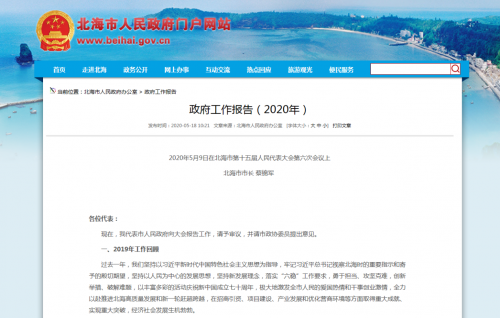 2020年北海市政府工作报告于近期线上发布,通过报告内容,我们既看到了过去北海的发展与变化,也看到了今年工作安排中的许多新亮点,很多工程非常值得我们关注和期待。 2020年北海政府