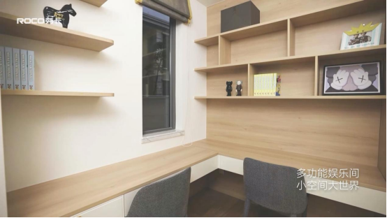 同时还精心设计了儿童学习空间,双人位书桌满足2人同时看书学习,让彼此在陪伴中互相成长、共同学习,探索世界的奥秘。值得注意的是,设计团队还特别设计了多功能柜以及翻床,能够满足保姆日常用品收纳及休息,随时收起扩大儿童玩耍空间,给孩子更多童年的自在天地。