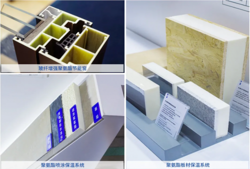 为解决低碳建筑高效节能窗选择型材的难题,万华化学研发出性能优异的聚氨酯树脂体系,结合玻璃纤维作为不燃材料的特性,通过先进的拉挤工艺生产出性能优异的玻纤增强聚氨酯复合材料。聚氨酯复材具有保温性能优异、抗拉强度高、耐火性好、耐候性好、耐油性好、憎水率高、尺寸稳定、降音隔噪等特点,用于制造传热系数K值在0.8 ~ 1.6 (W/m2 ·K)的节能门窗具有较高性价比,将成为低碳建筑、超低能耗节能门窗型材的首选材料。