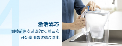 进行三次滤水之后,长按激活滤芯更换计时器5秒,激活滤芯,这样你给滤水壶的换“芯”就完成啦。