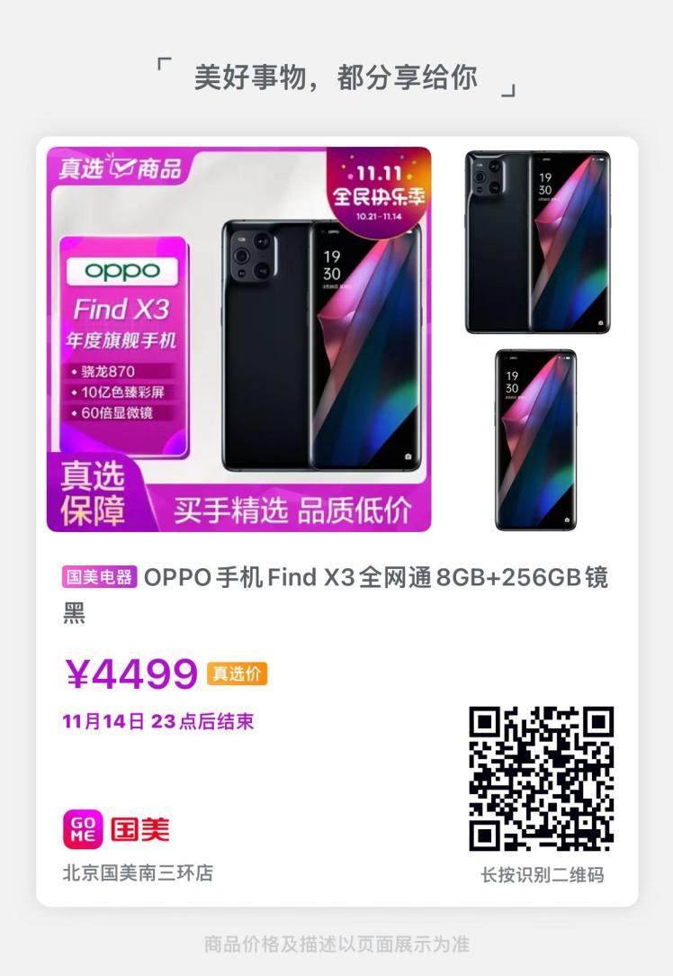 在如今这个颜值当道的时代,手机也被大家看作是出街的时尚单品。这个双11,国美电器就为大家真选了一款人气颇高的OPPO Find X3系列,它采用一体流线设计,打破影像镜组与机身的边界,延展你对未来科技的想象。考虑到现在很多人使用手机拍照,OPPO Find X3系列配备了旗舰级四摄,包括5000万像素超广角镜头、5000万像素广角镜头、1300万像素长焦镜头以及60倍显微镜头,助你轻松拍出有质感的时尚大片。